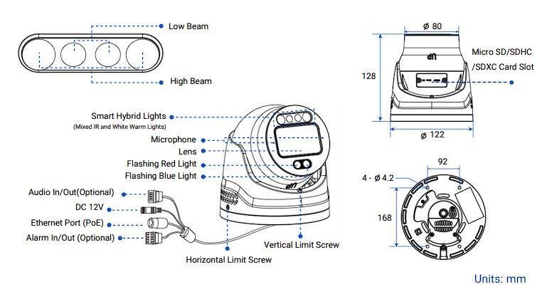 | Akce události | Nahrávání přes FTP, nahrávání přes SMTP, snímek, nahrávání, externí výstup, přehrávání zvuku, alarm na SIP telefon, HTTP upozornění, výstražné světlo atd. |